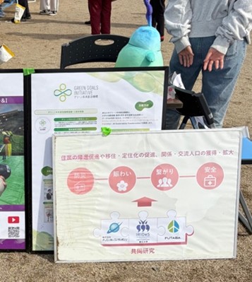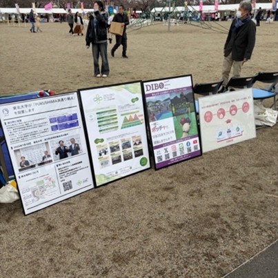 また、本学が株式会社オリエンタルコンサルタンツ・株式会社ふたばと進める共同研究「夜ノ森プロジェクト」の初動的な取り組みとして、「夜の森桜まつり」において、DX 技術を活用し、賑わいの効果計測および来街者等の人流解析を実施していたことから、ブースでは「夜ノ森プロジェクト」の取り組みに関するポスター展示や説明も実施されました。