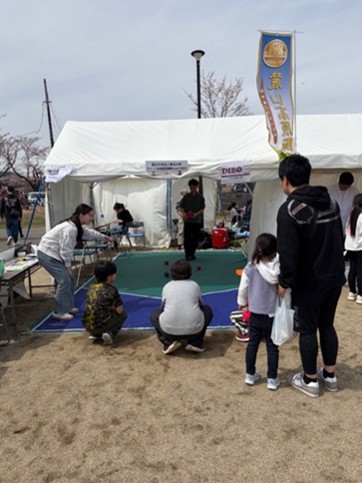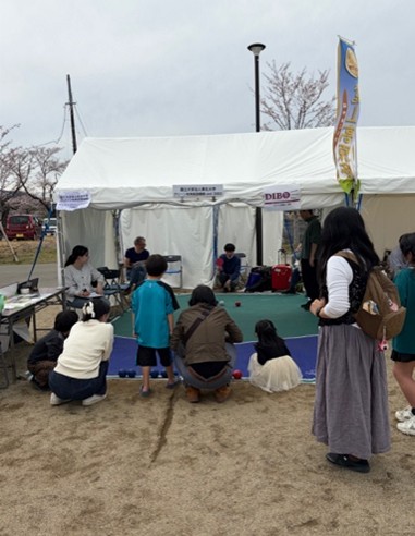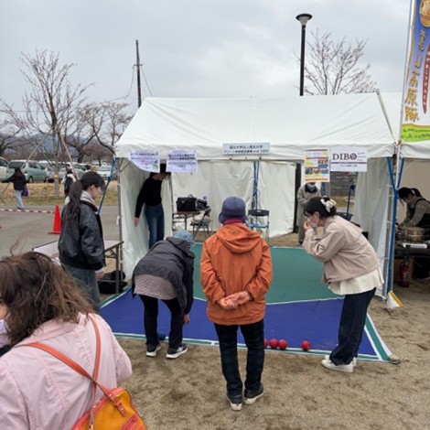 公園内での出展となったボッチャブースでは、東北大学ボッチャ公共空間ボッチャプロジェクトD&I(DIBO)の学生さんが参加し、来場者のみなさんと競技についての説明やボッチャサークルのPRなどを行いました。