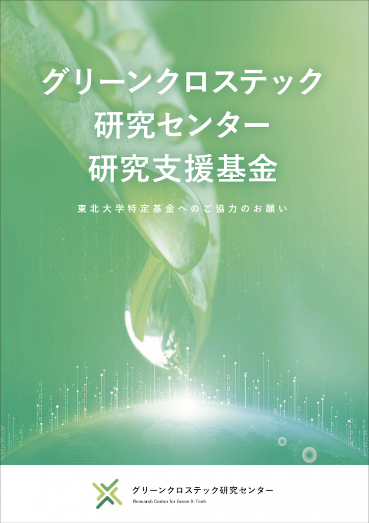 We have established the “The Research Center for Green X-Tech Research Support Fund” to promote the social implementation of research outcomes. This fund is aimed at solving global challenges such as environmental conservation and the recycling of finite resources.